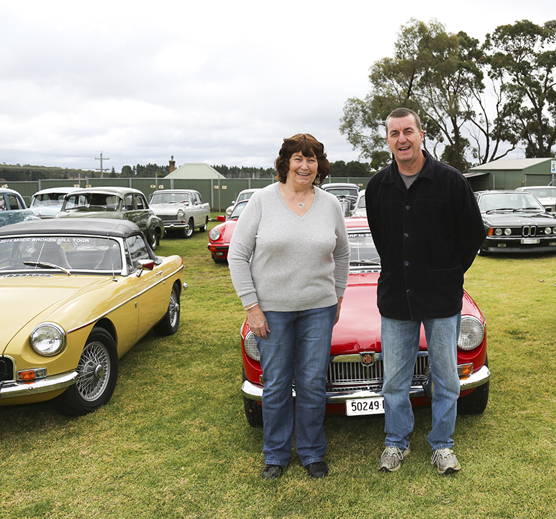 Mayor Maree STatham also dropped in to greet the visitors and was happy to pose next to a 1960 MG-A, owned by Sandra Collins.