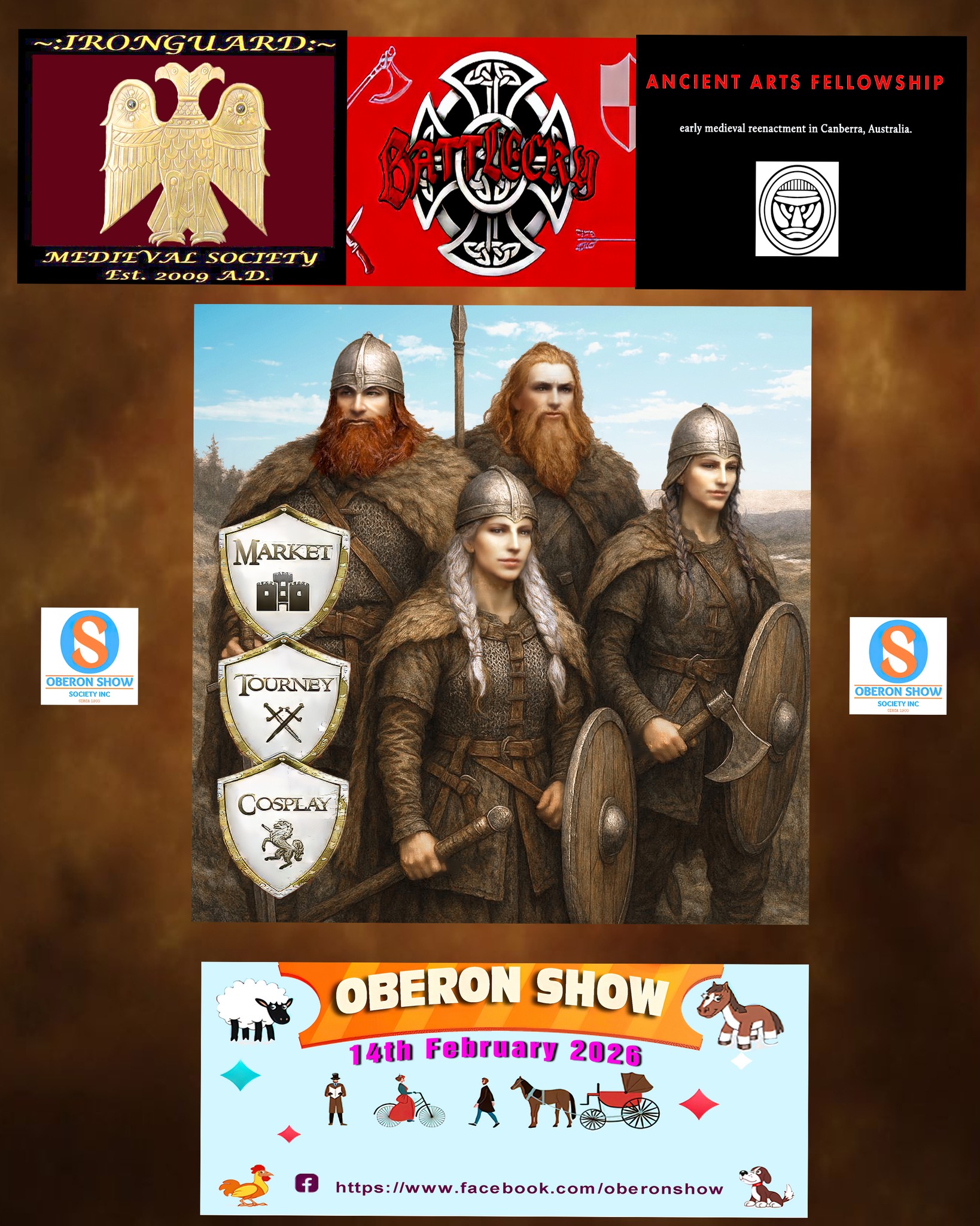 For thrill seekers the action builds up with for the first time in Oberon live Medieval Fights where knights battle each other. Display of Medieval Weapons and Armour with a Medieval Village, World War One and Two Military displays and Military re-enactors plus a Classic Machinery Display.